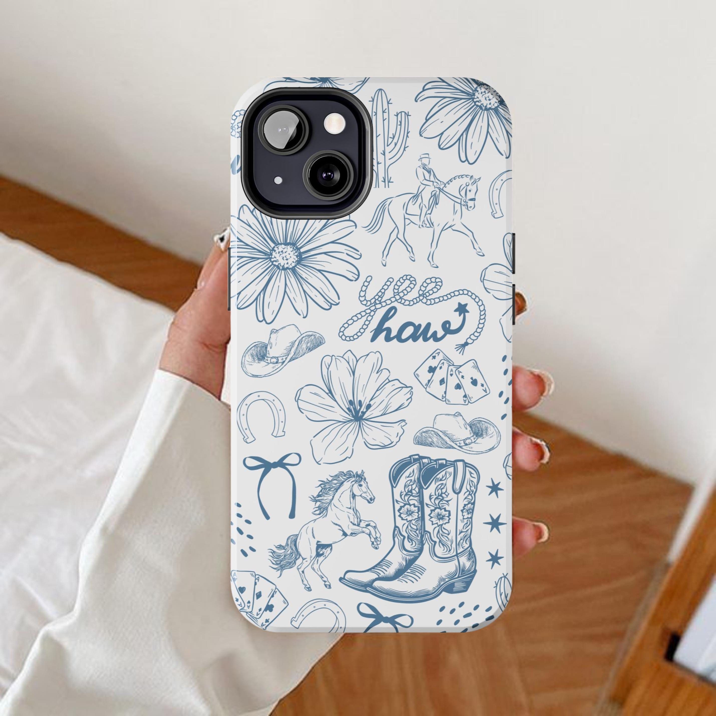 In sella con la nostra custodia per telefono Blue Coastal Cowgirl! Questo grazioso design presenta u...