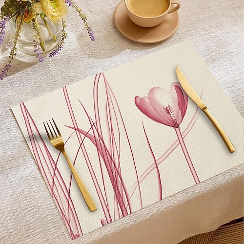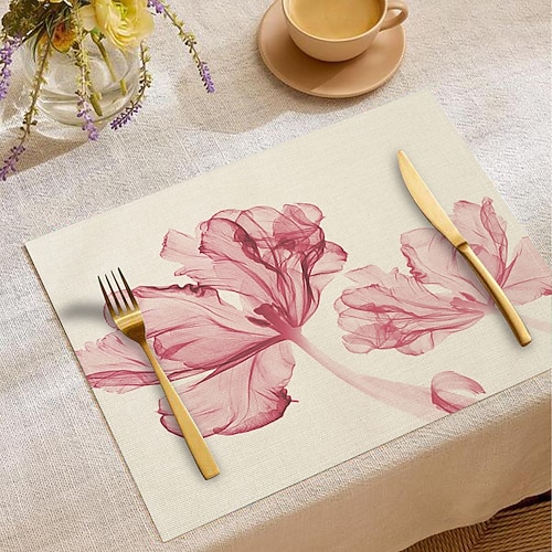Tovaglietta da tavola rettangolare in tessuto con motivo a tulipani...