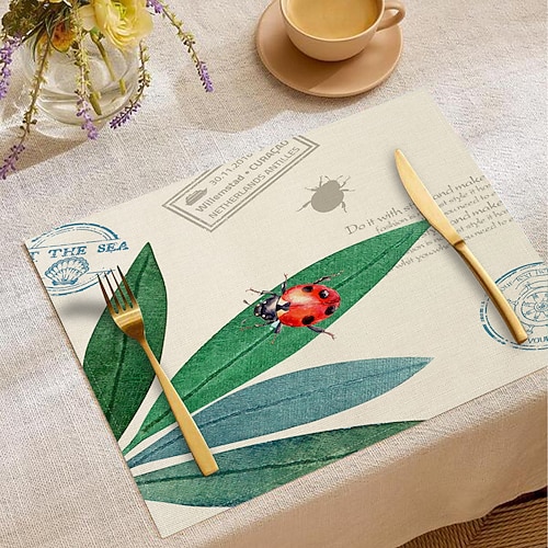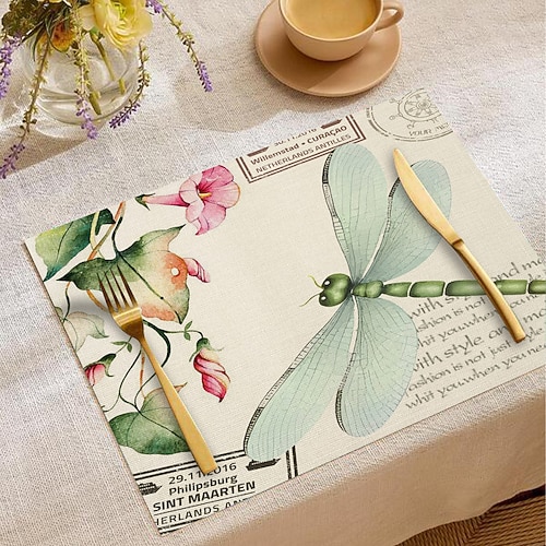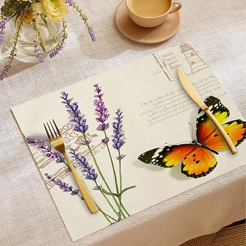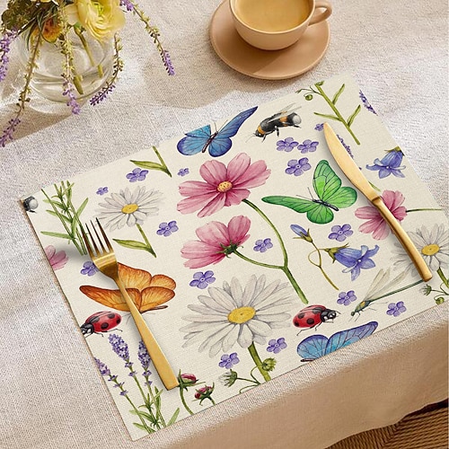 Tovaglietta da tavola in tessuto con motivo floreale e farfalle, 10...