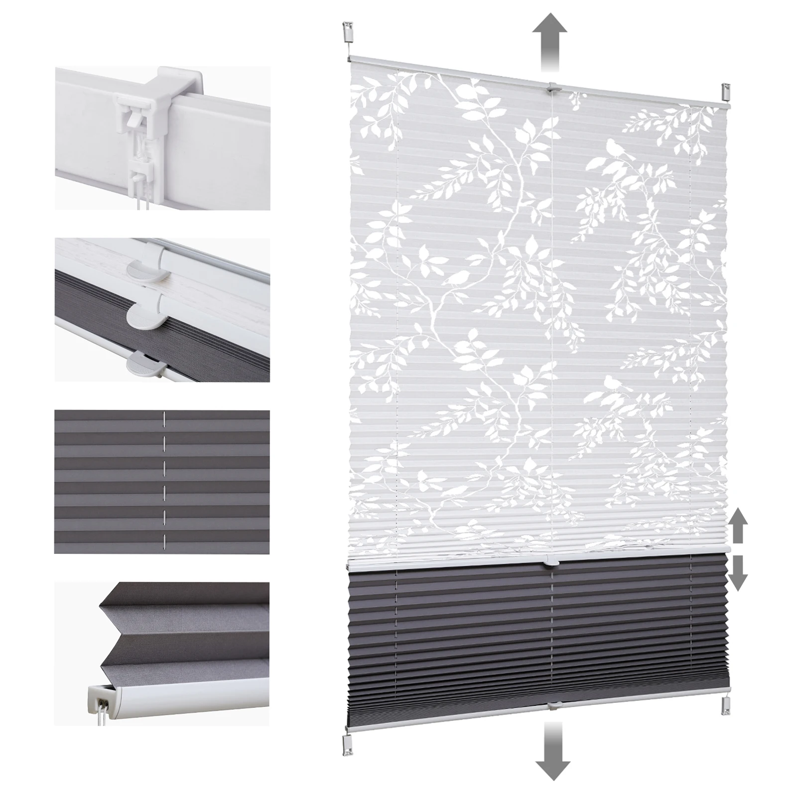 Tenda plissettata Sekey a doppia piega, oscurante giorno/notte, senza foratura, con protezione dalla...