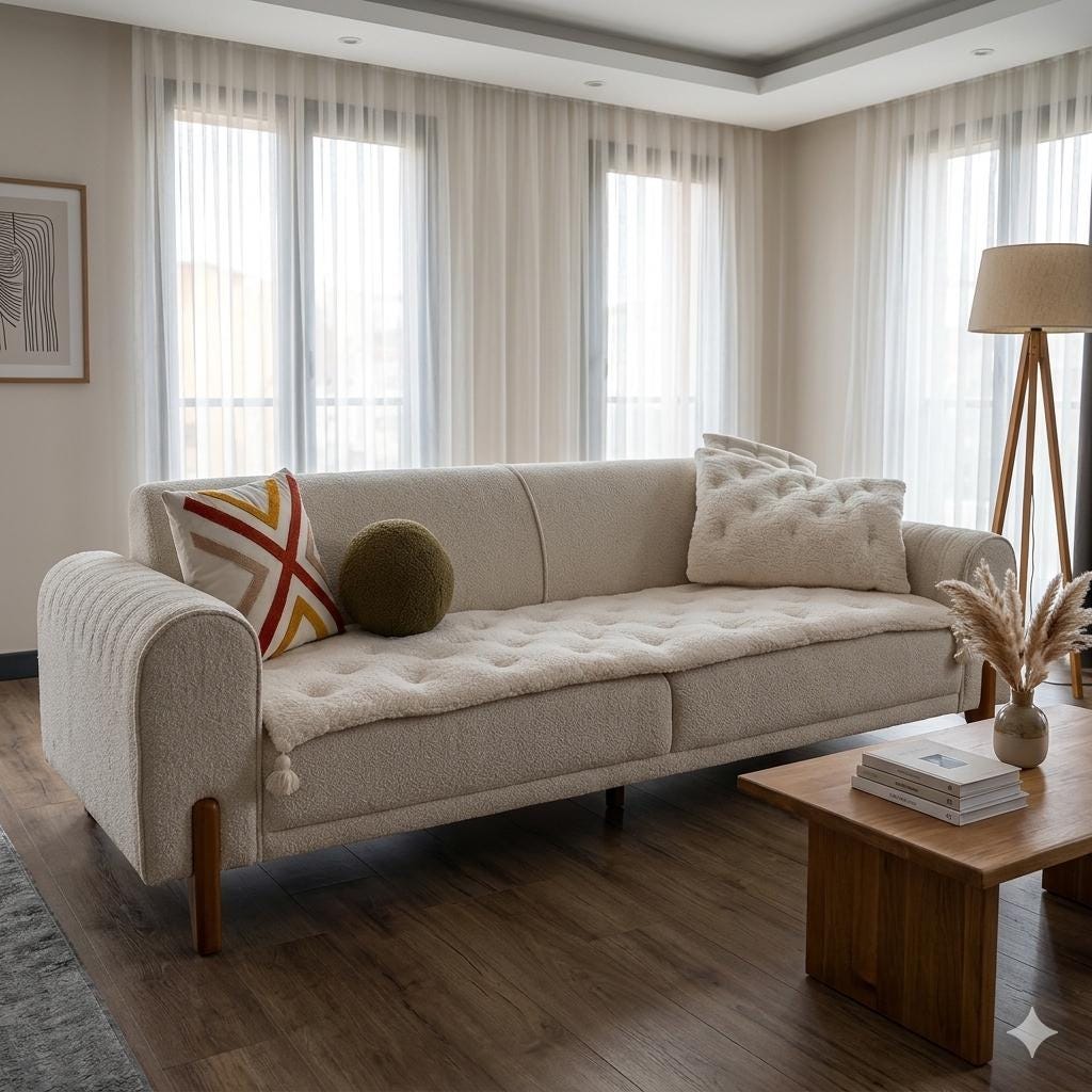 Copridivano in cotone beige: fodera boho testurizzata adatta agli a...