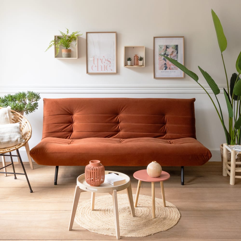 Divano letto a 3 posti in velluto terracotta