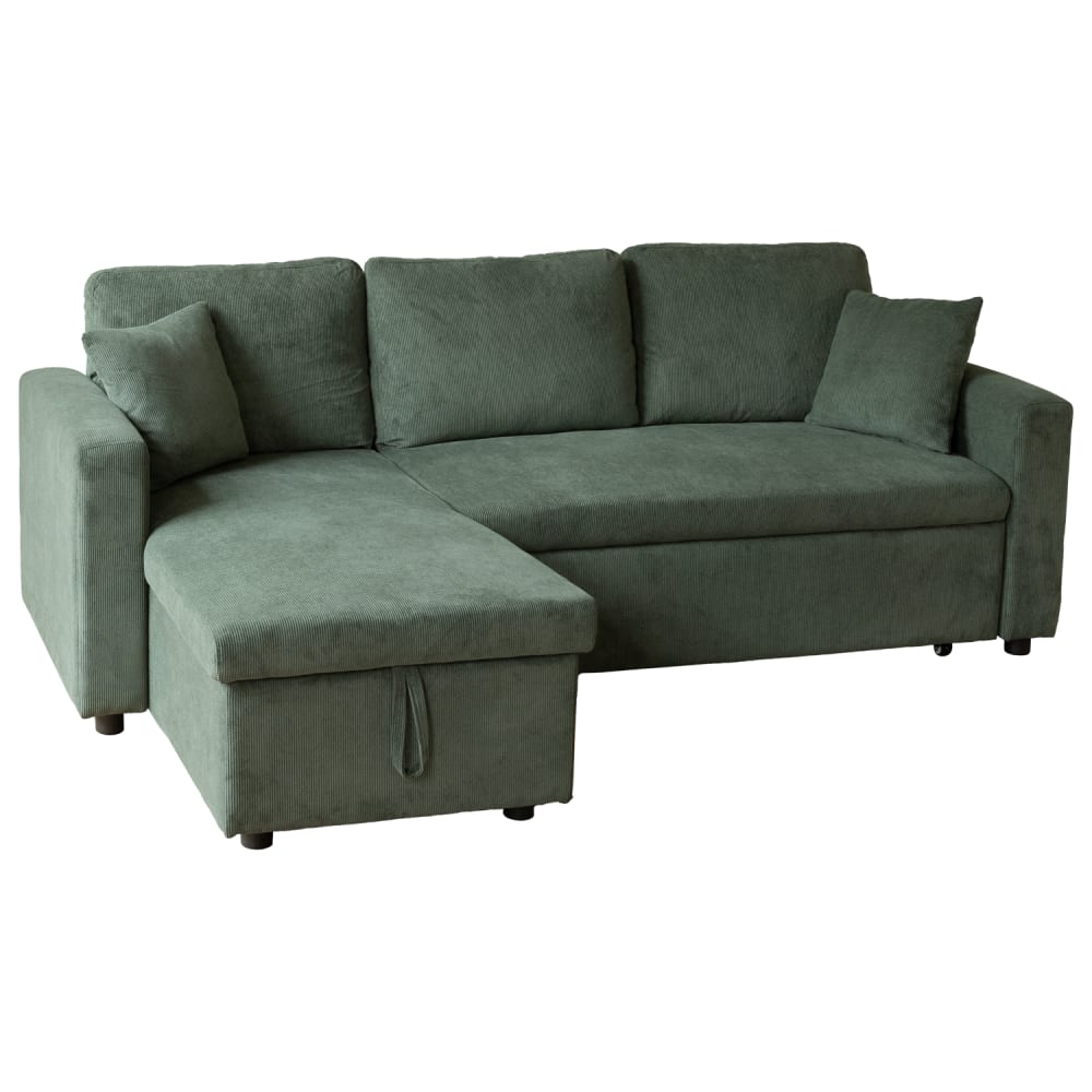 Divano letto angolare a 3 posti in velluto a coste verde