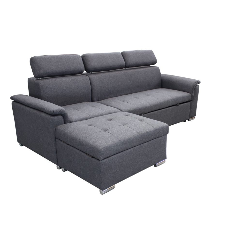 Divano letto con penisola in tessuto grigio scuro 234x148x84
