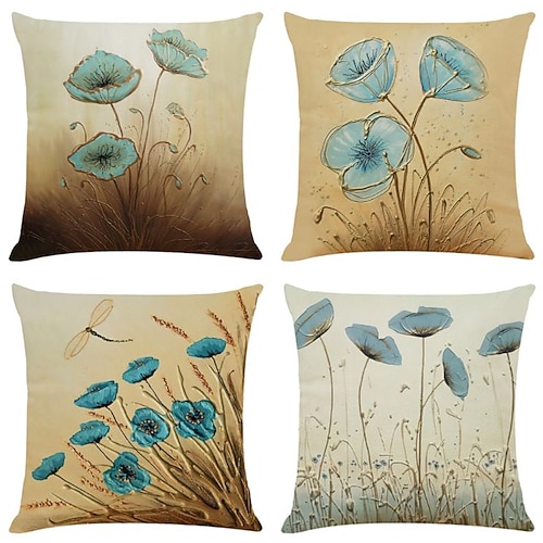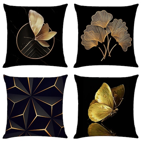 set di 4 federe per cuscini rami aperti e foglie sciolte finto lino...