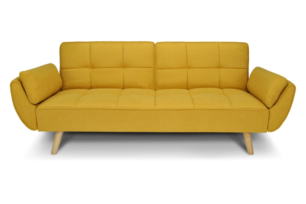 Divano letto clic clac in tessuto vellutato giallo piede naturale