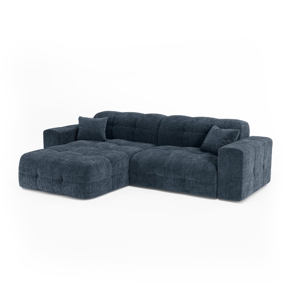 Divano angolare sinistro 5 posti velluto goffrato blu minerale