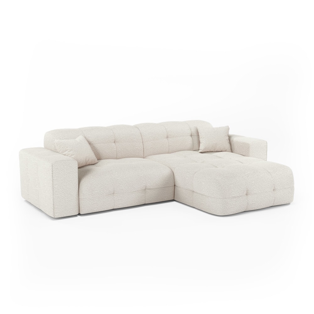 Divano ad angolo retto 5 posti bouclé crema