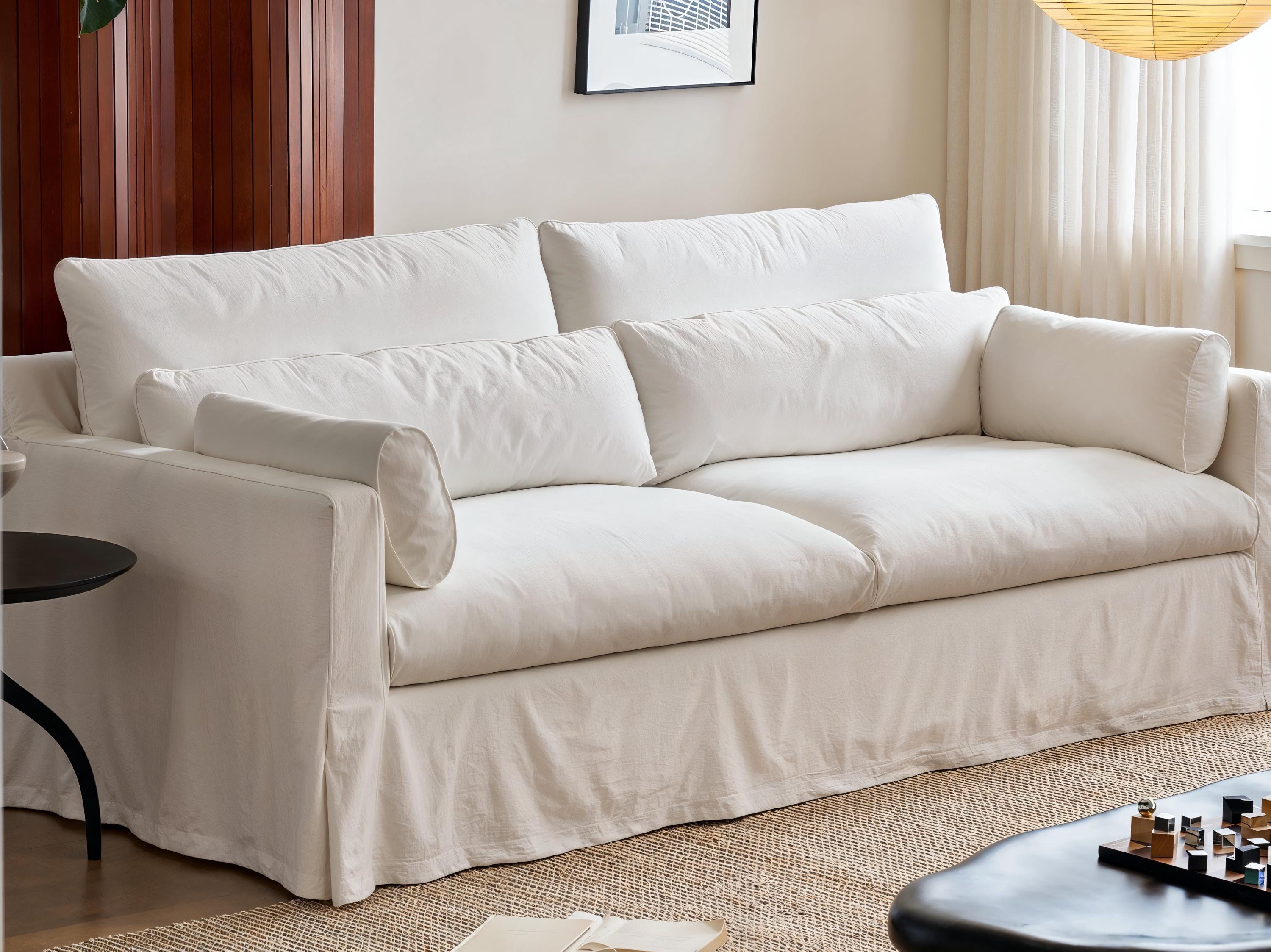 Copridivano in cotone e lino bianco, copridivano a due posti, vari ...
