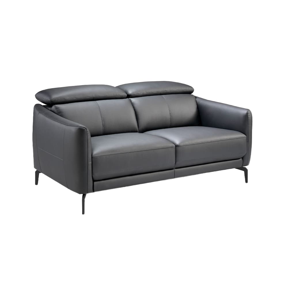 Divano a 2 posti in pelle grigia e gambe in acciaio nero