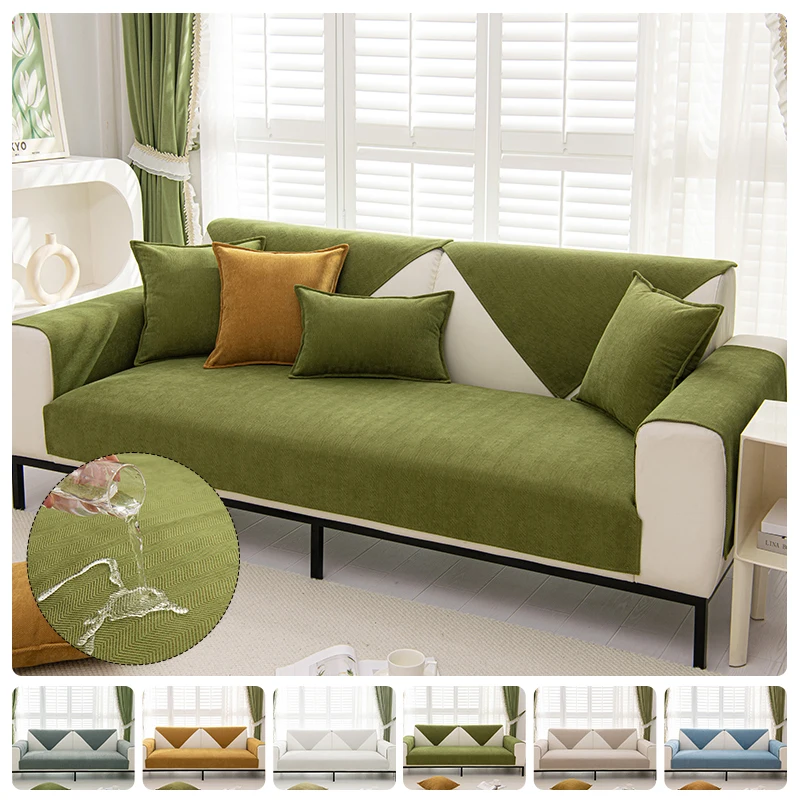 Ciniglia texture copridivano universale antiscivolo economico impermeabile divano cuscino asciugaman...