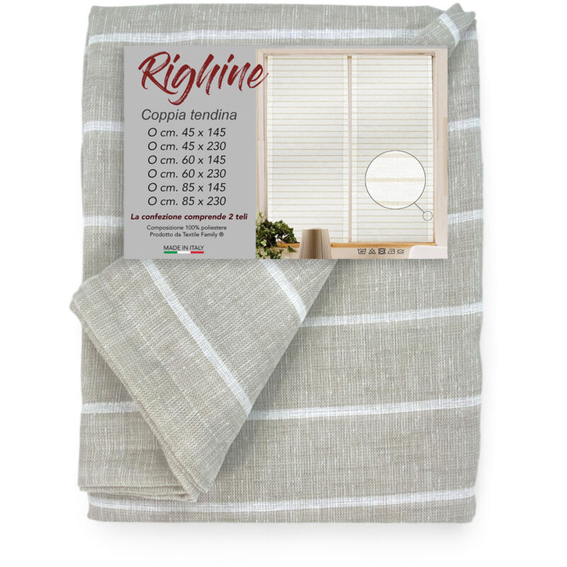 • Coppia Tendina Vetro Moderna Larga 45 O 60 O 85 Righine Beige Coppi...