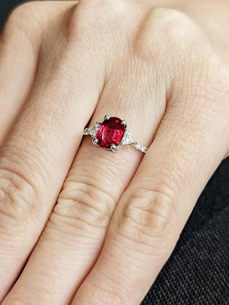 Anello per anniversario di matrimonio in oro bianco 14K 18K con rubino rosso solitario per moglie / ...