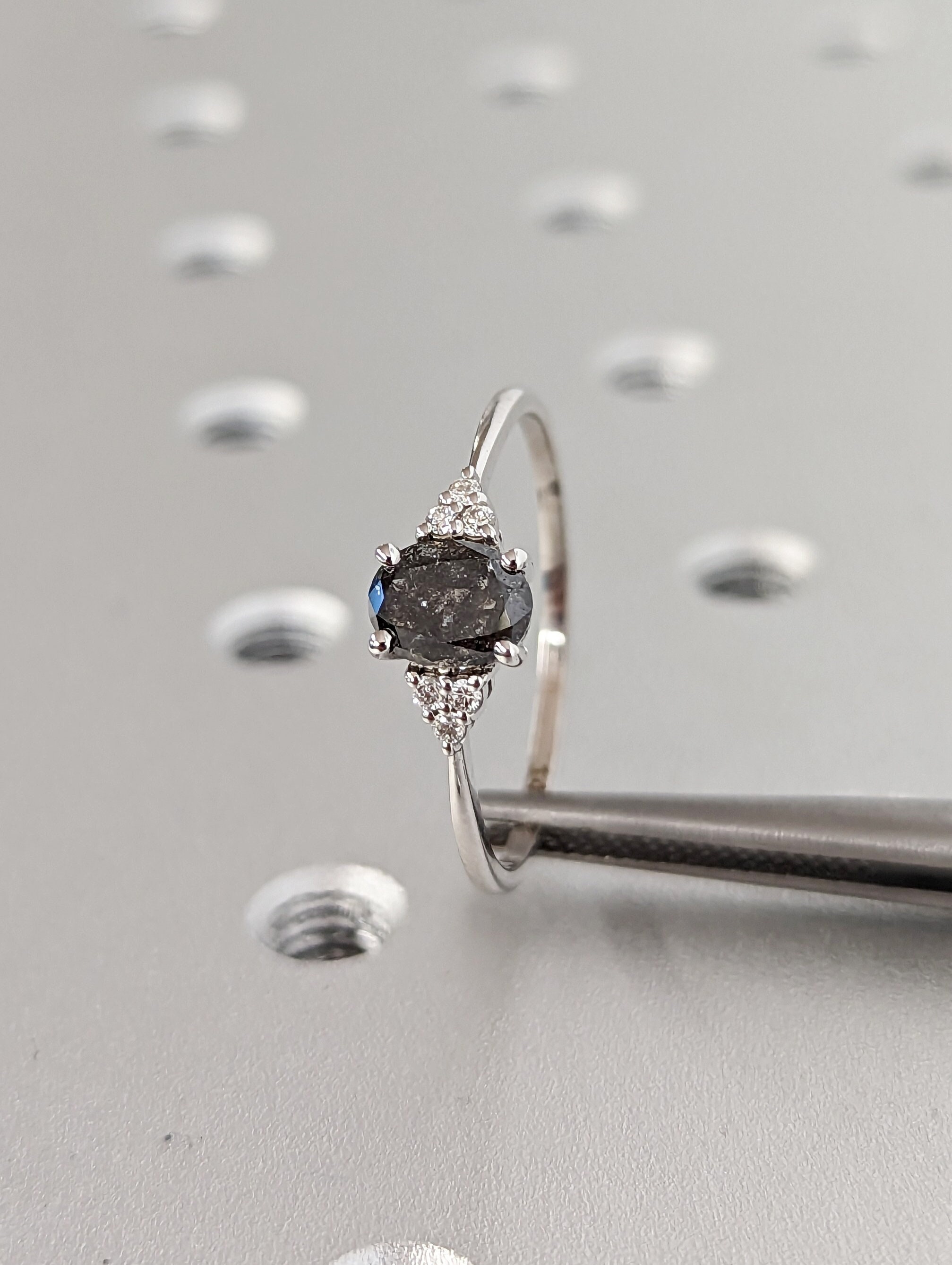 Anello di fidanzamento vintage con diamanti sale e pepe, anello di ...
