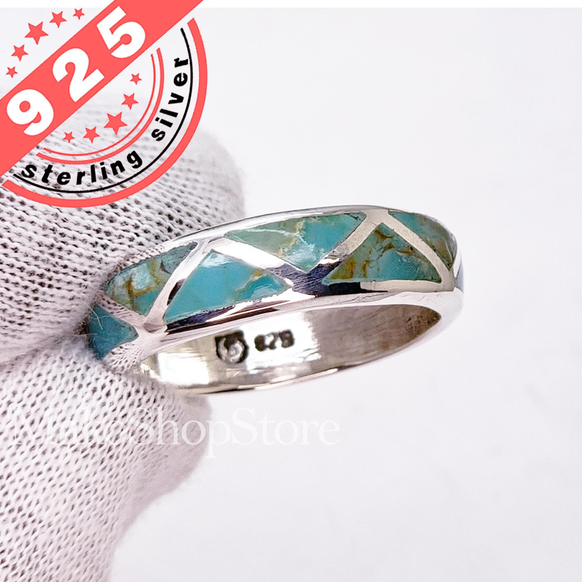"Questo è un anello a fascia in argento sterling intarsiato con pietre assortite di turc...