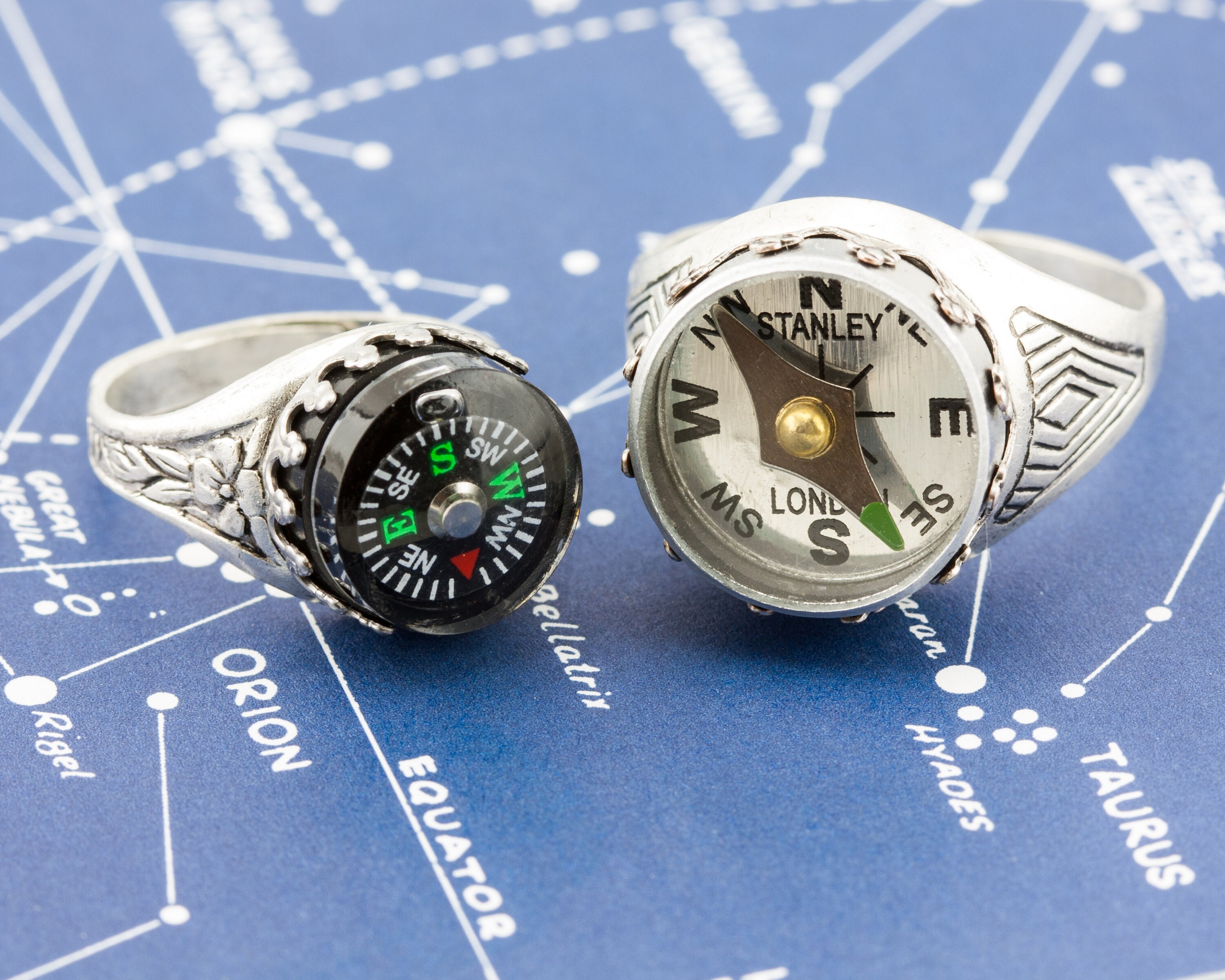 Anello con bussola funzionante per lui e/o per lei. (L'inserzione si riferisce a 1 anello); selezion...