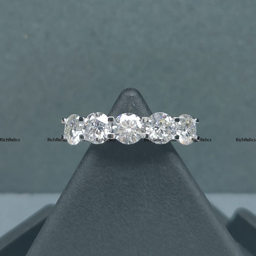 Anello con 5 diamanti simulati taglio brillante da 5 mm e 5 pietre/...