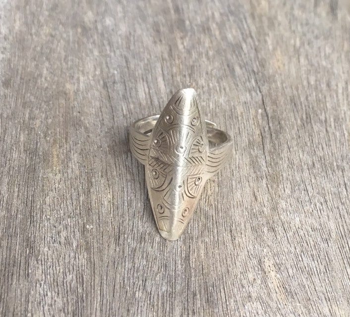 Vecchio Hmong anello d'argento navetta sella regolabile lungo stret...