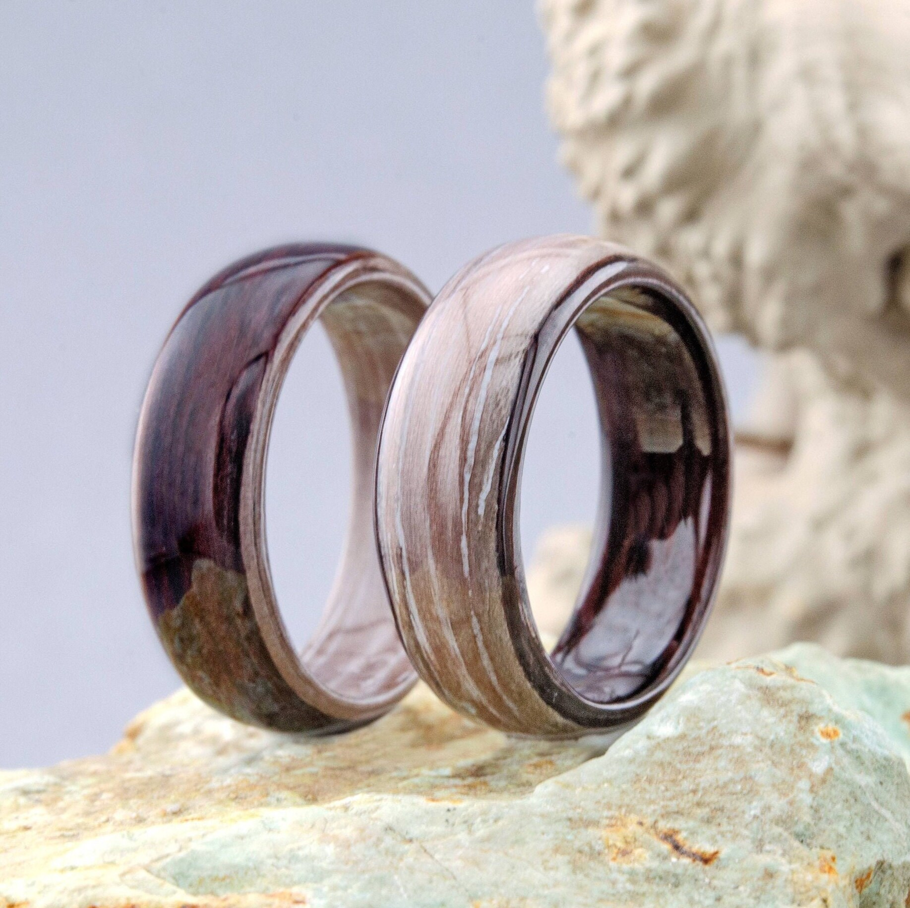 Anniversario di matrimonio in legno, set di anelli per coppie, rega...