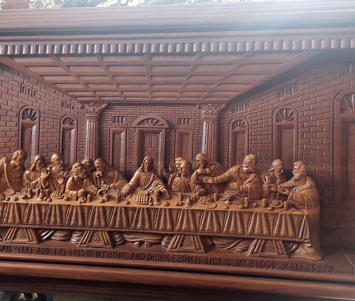 L'ultima cena in rilievo in legno/200 cm x 100 cm/scultura in legno...