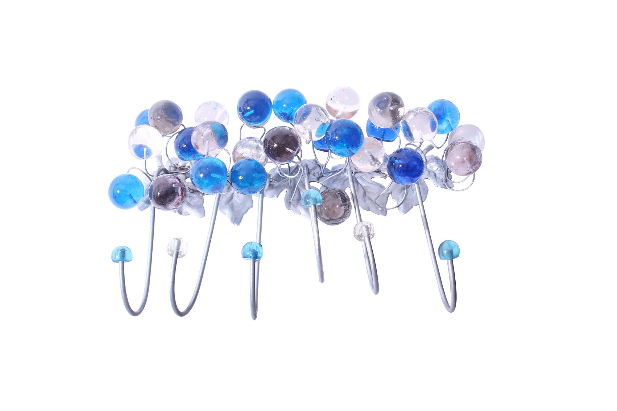 Ganci decorativi da parete, attaccapanni con bolle blu, grigie e tr...