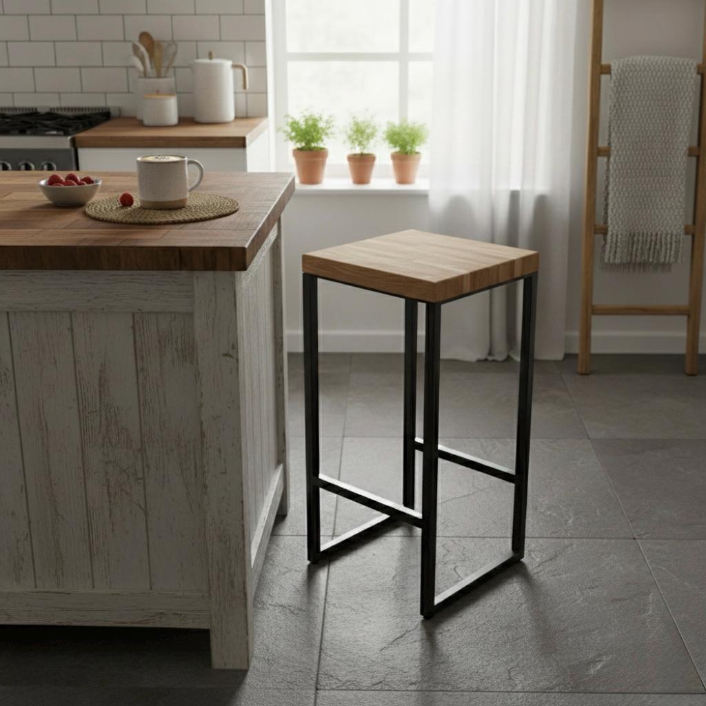 Sgabello da bar in legno di quercia rustico, struttura in metallo i...