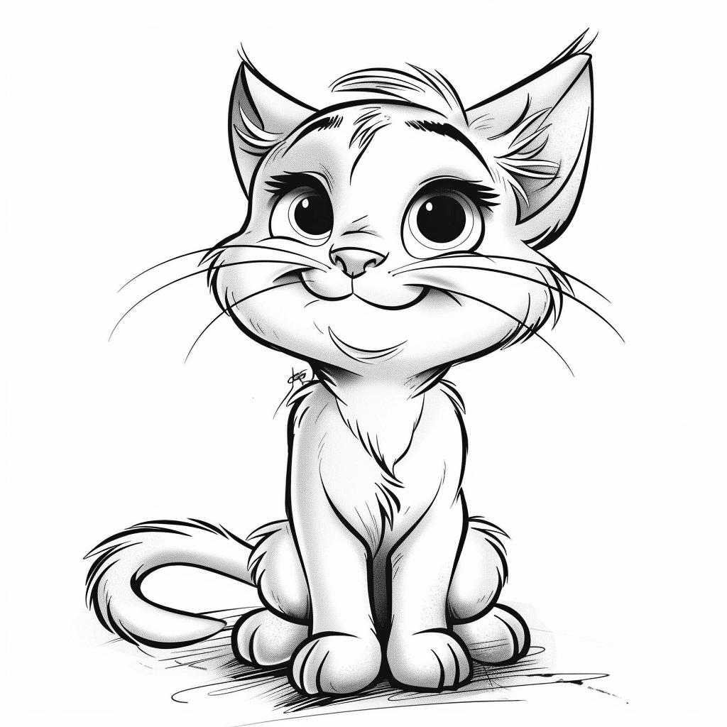 "Gatto/Gattino Cartoon Line Art. Line art in bianco e nero su sfondo trasparente, clipart AI pr...
