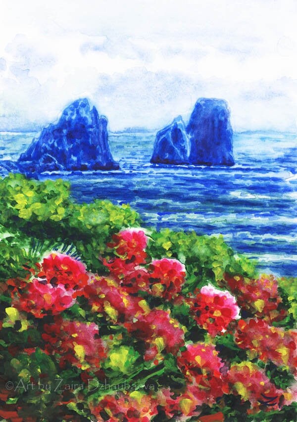 Rocce di Capri. Questa è una stampa creata dal mio acquerello originale. È stampato su...