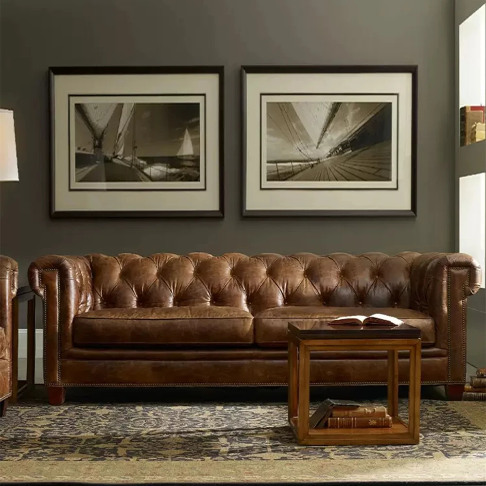 # Set di divani Chesterfield in tessuto stile classico nordico Divani da soggiorno imbottiti in vell...