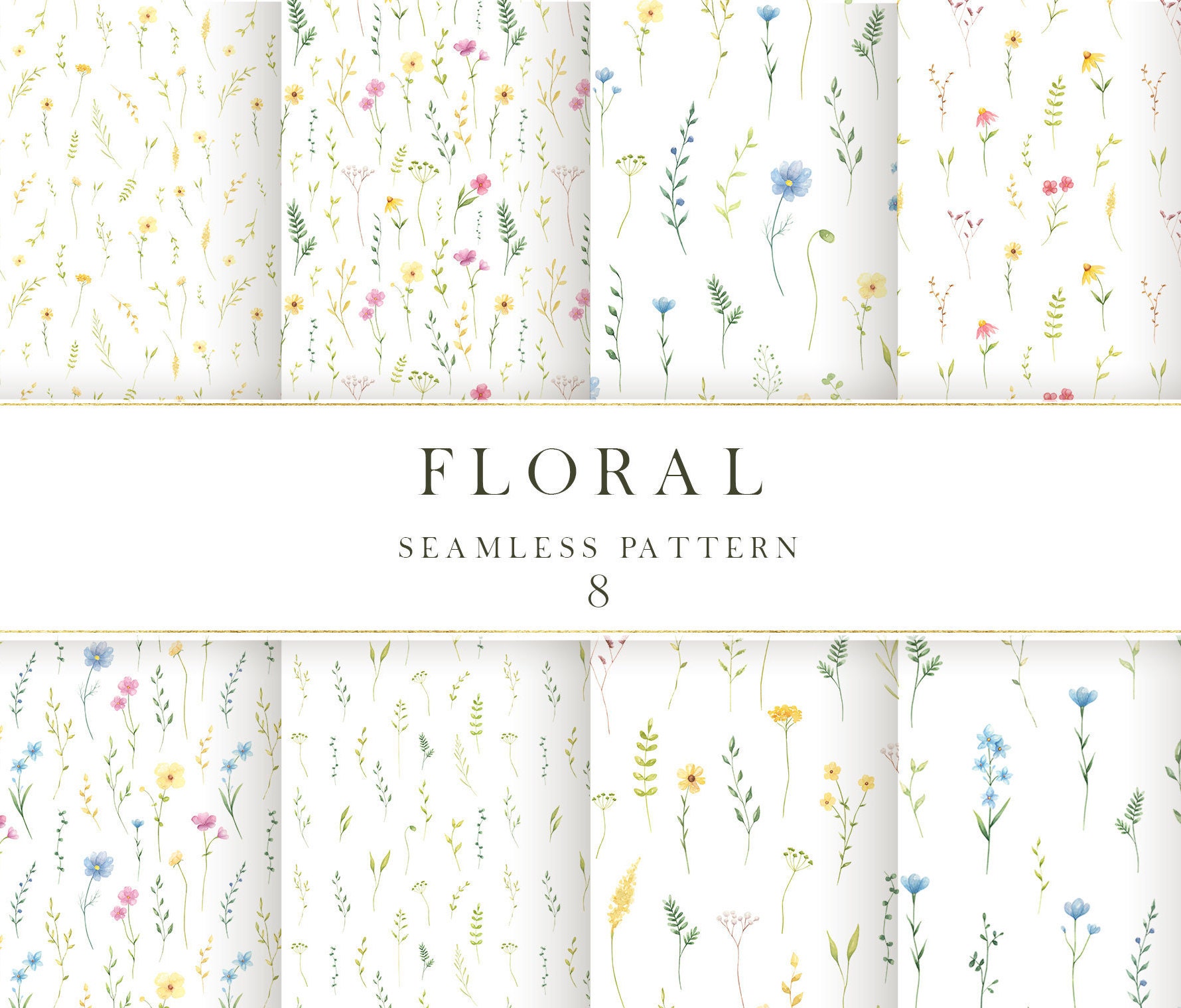 8 file JPEG/PNG di alta qualità (300 dpi, 12x12 pollici) Questo motivo ad acquerello floreale...
