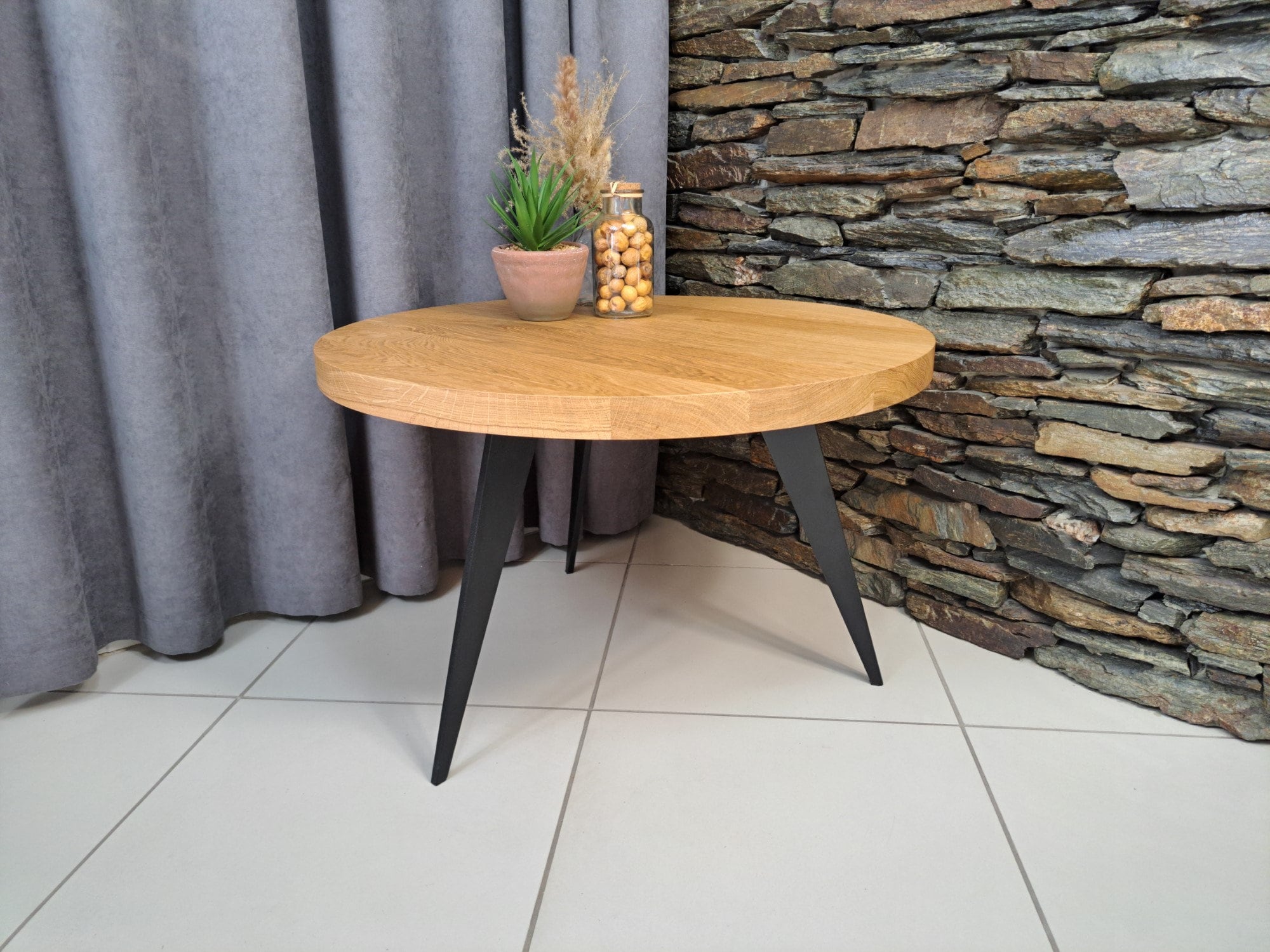 Tavolino da caffè in legno massello di rovere rotondo con ga...
