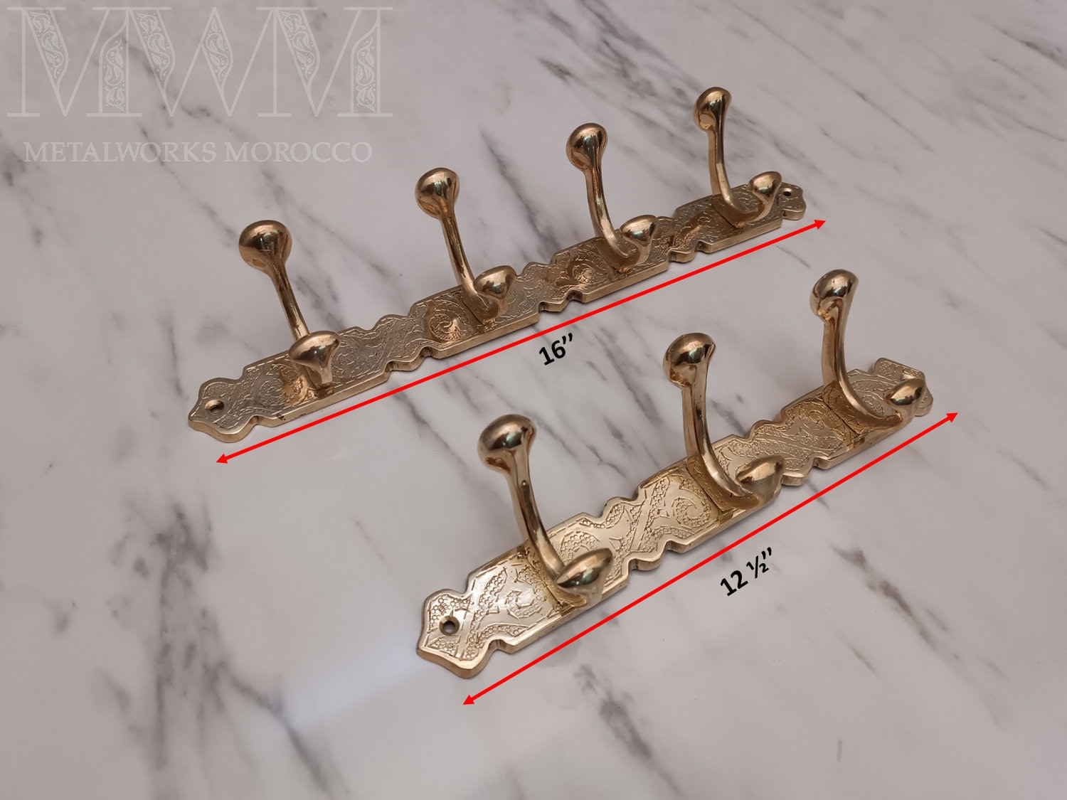 "Appendiabiti in ottone massiccio inciso con tre o quattro ganci, ganci appendiabiti per montag...