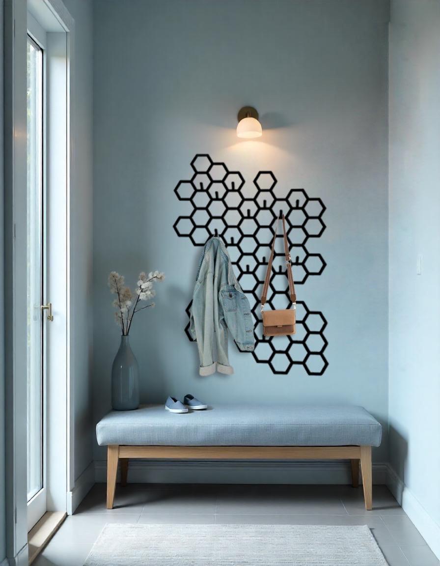 Appendiabiti da parete esagonale extra large, organizer da parete geometrico, ganci da ingresso mode...