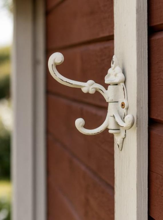 Set di 3 ganci da parete girevoli in ghisa, color ruggine, bianco crema, doppi ganci, appendiabiti d...