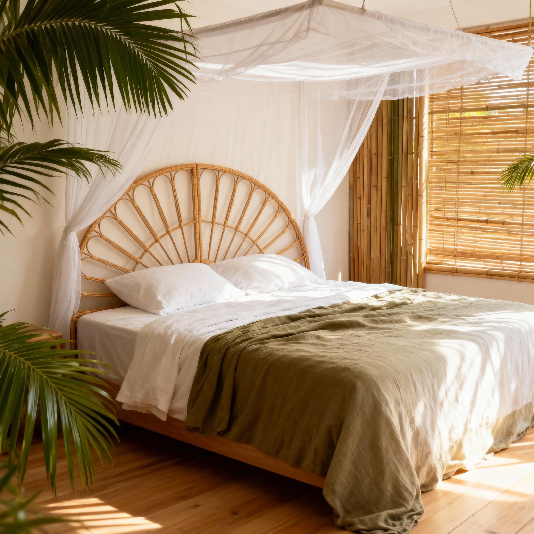 "Testiera in vimini di rattan naturale -- Opzione da appendere alla parete o da montare sul let...
