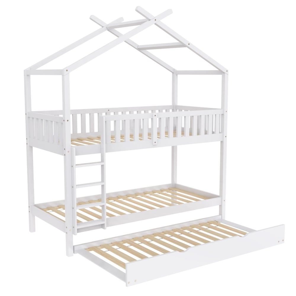 Letto a soppalco in legno bianco 90x200 cm con letto estraibile