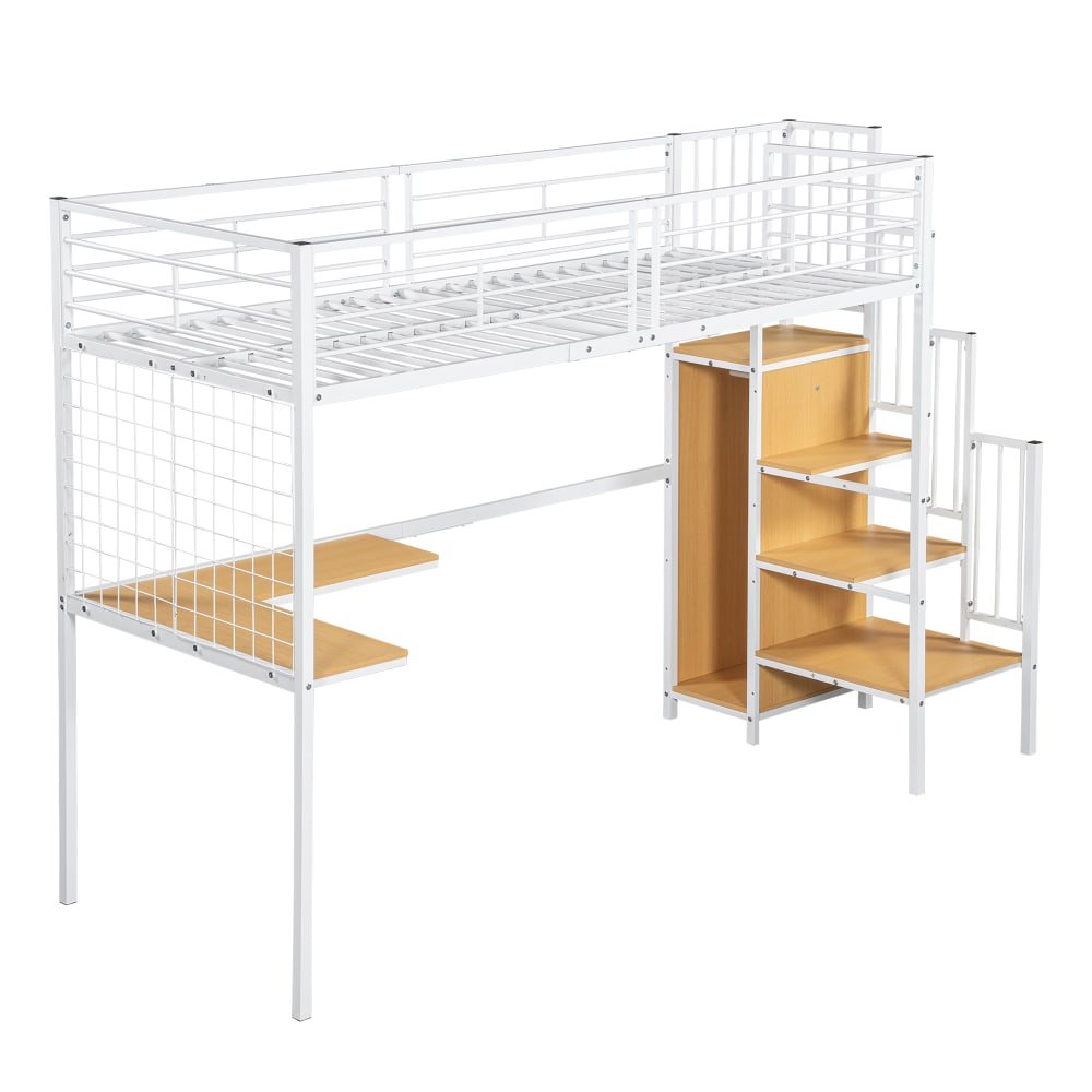 Letto a soppalco in metallo nero con ripiani, armadio e scale 90*20...