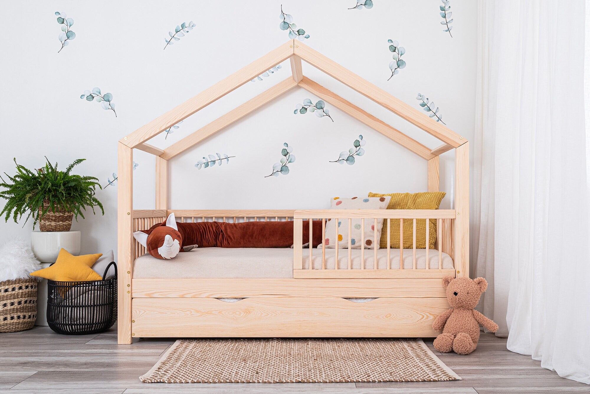 Letto a forma di casa KUU con protezione anticaduta - Letto per bambini Montessori in legno massello...