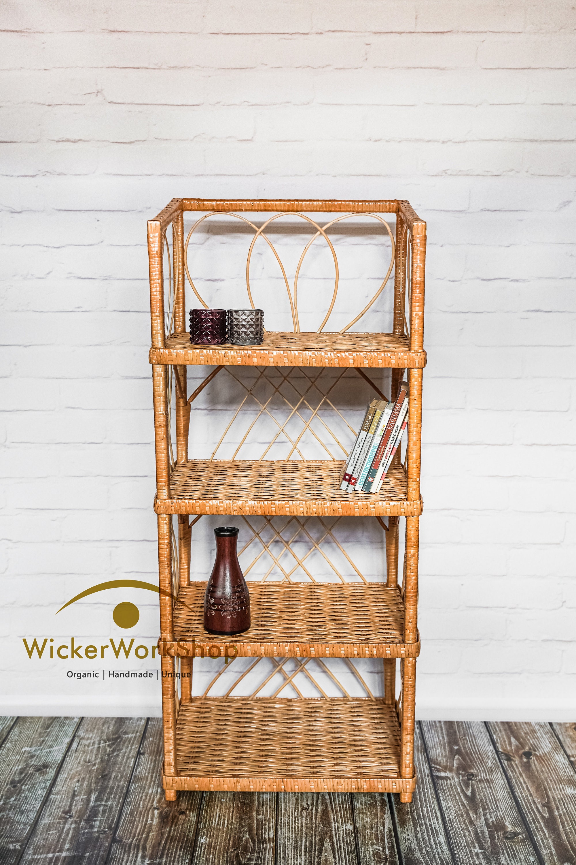 Libreria in rattan, libreria indipendente in vimini, libreria in ra...