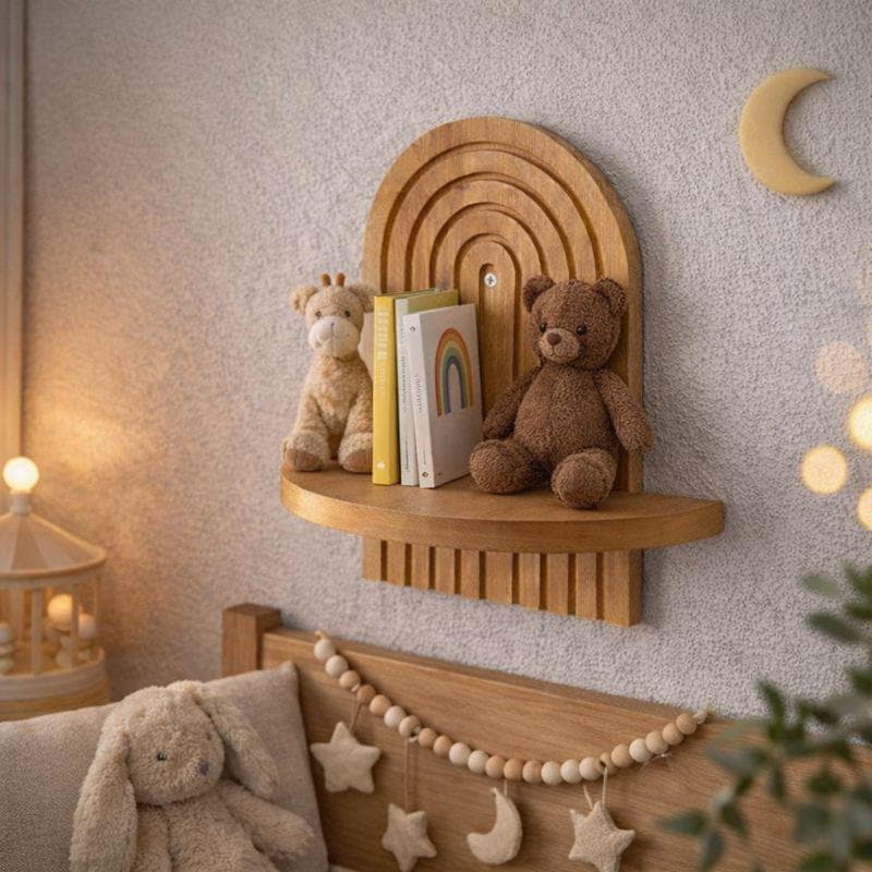 Crea un'atmosfera calda e tranquilla nella cameretta dei bambini con questa mensola da parete ad arc...