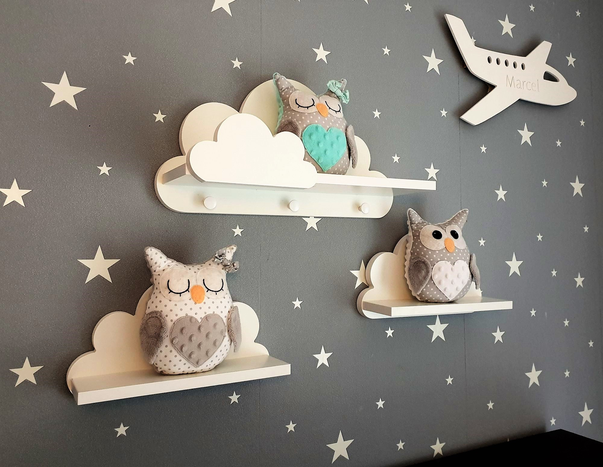 Mensole a forma di nuvola per la cameretta dei bambini, set di 3 me...