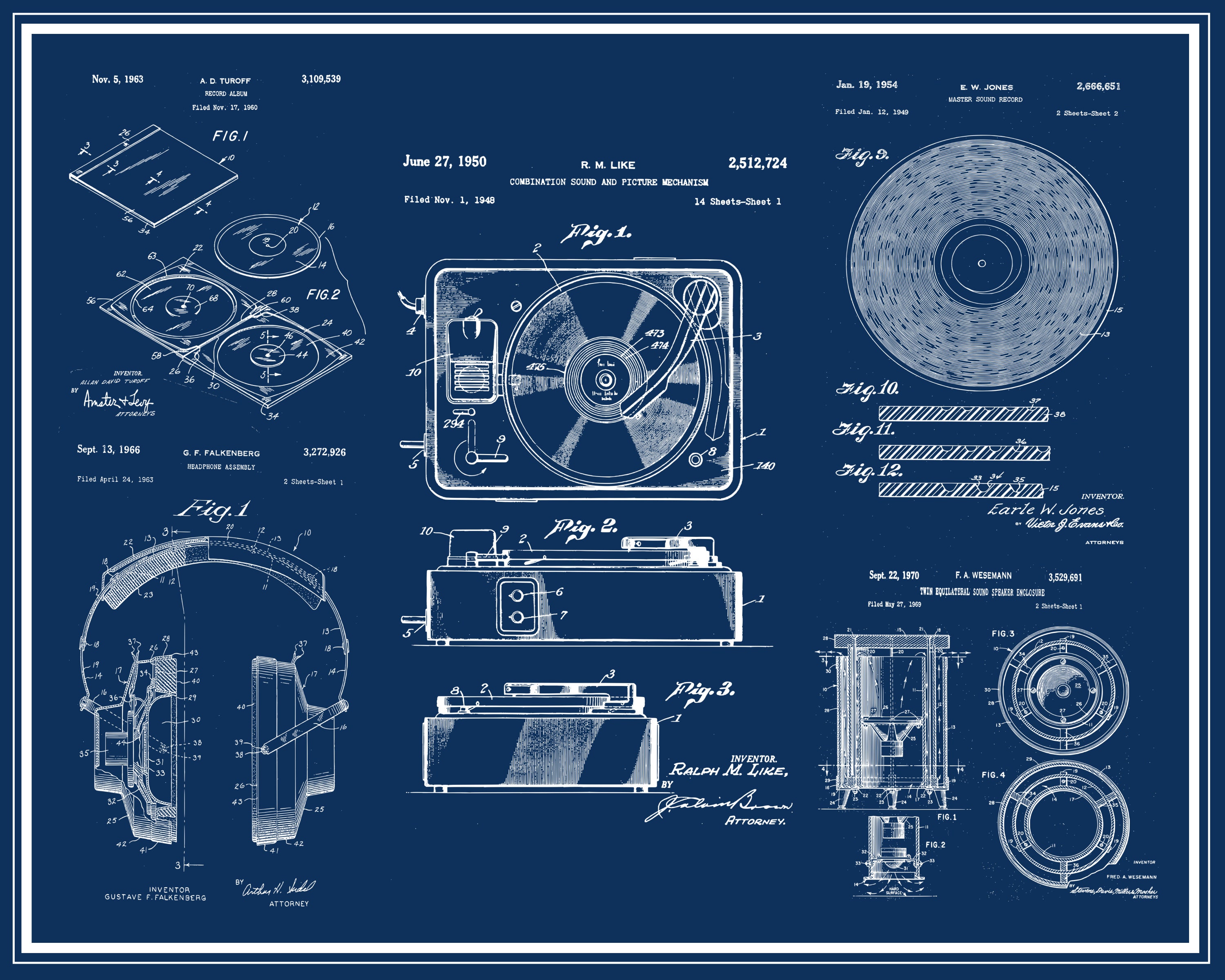 "Apparecchiature stereo, Hi-Fi, Poster di progetto, Stereo, Cuffie artistiche, Design brevettua...