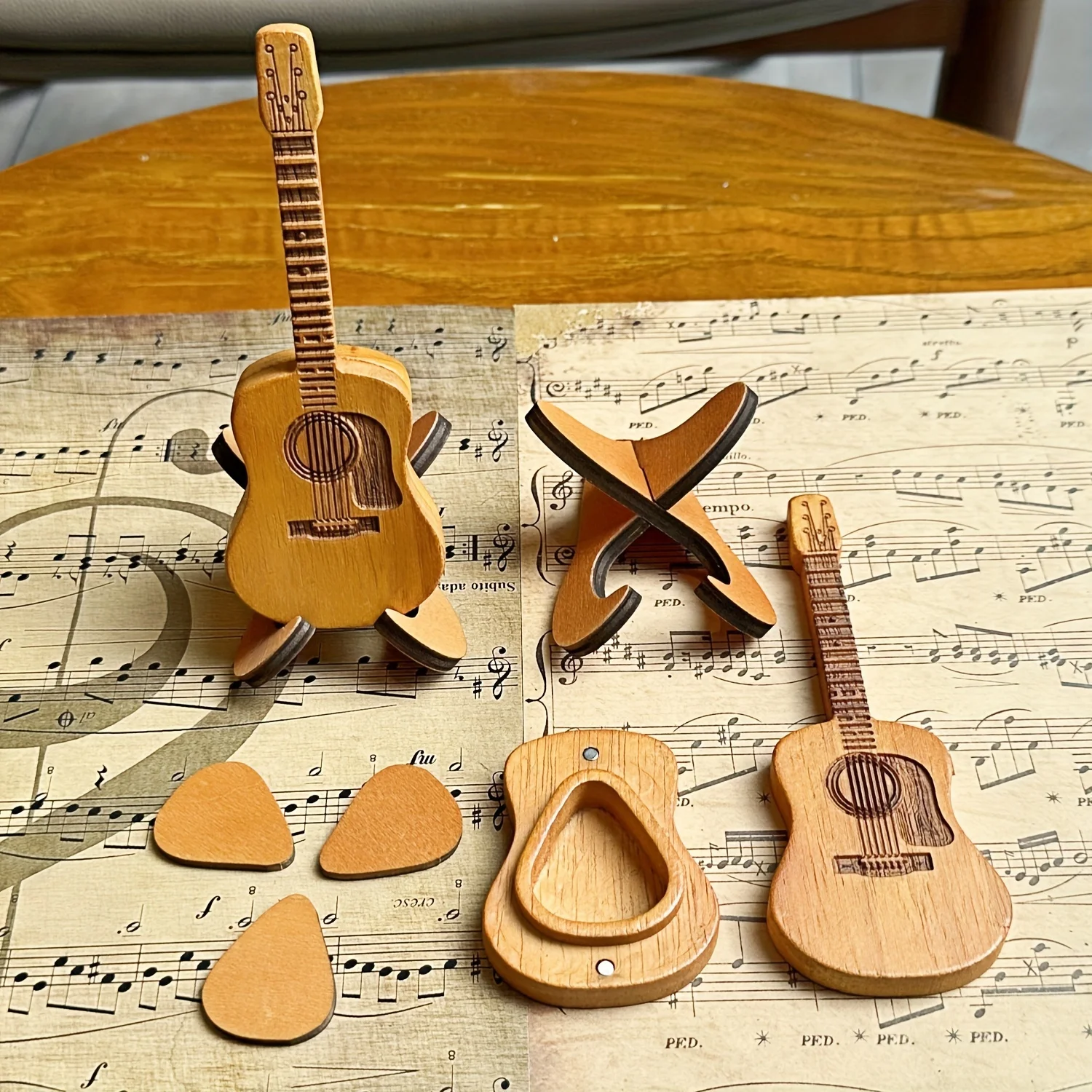 Personalized Wooden Guitar Pick Box with Standard 3 Pcs Engraved Gu...