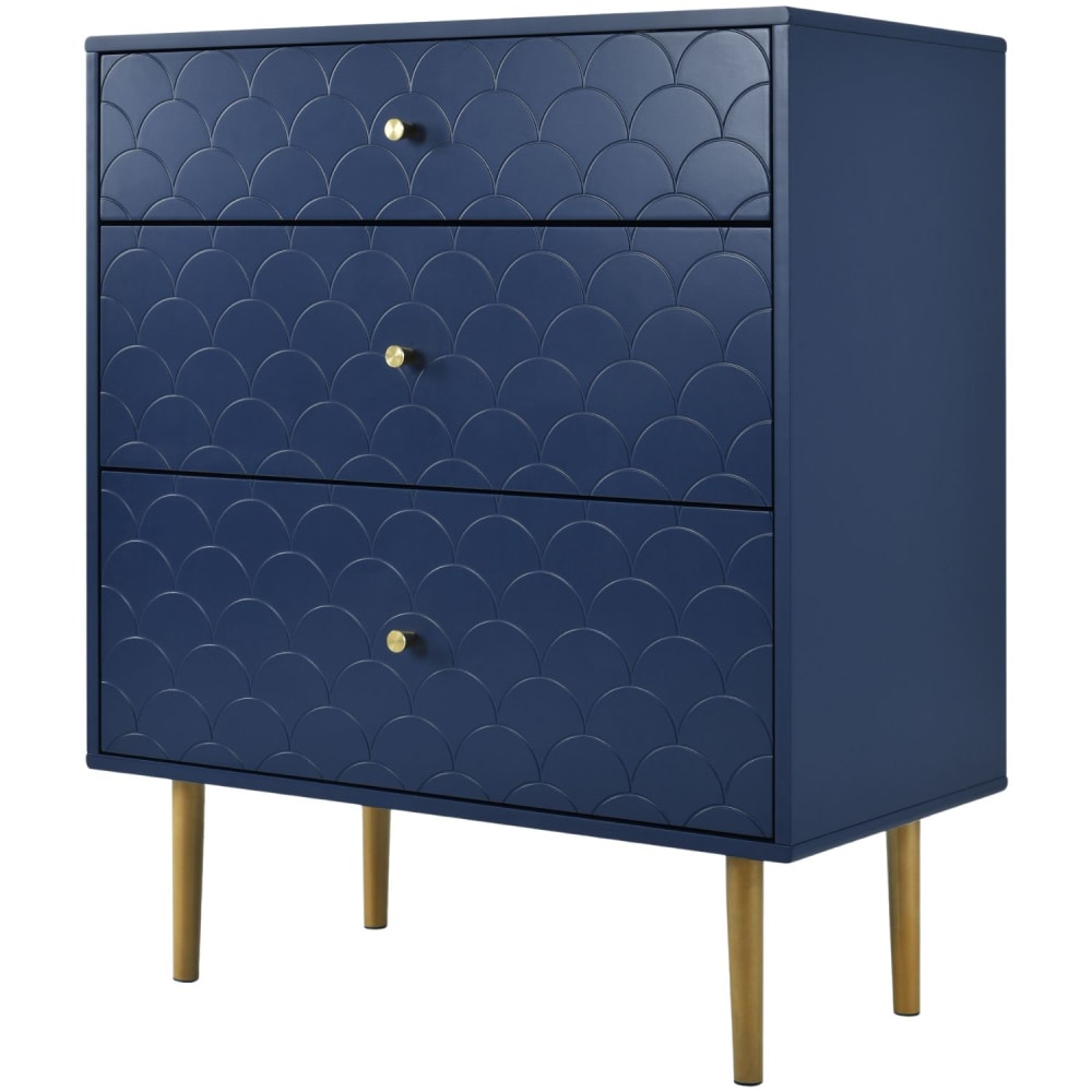 Credenza a 3 cassetti blu navy con piedini dorati