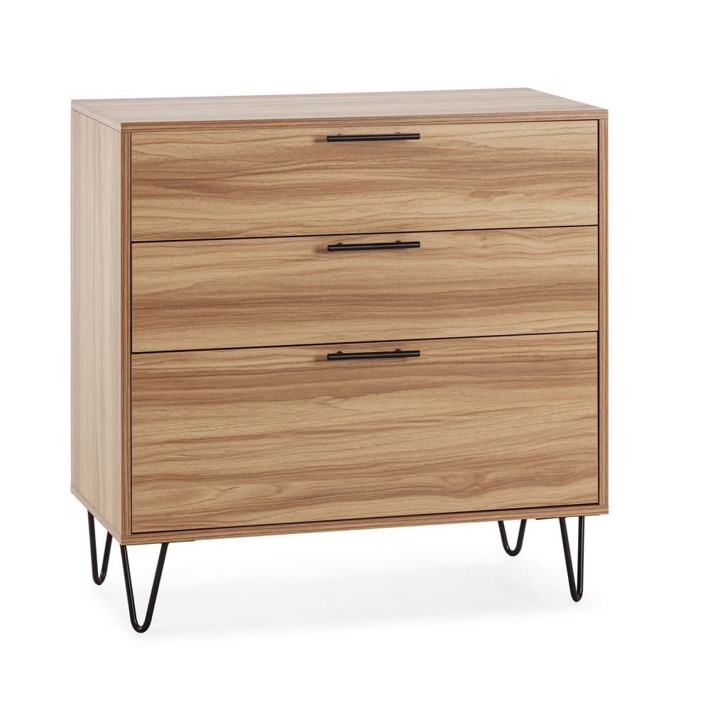 Comò 3 cassetti, colore legno, piedini in metallo