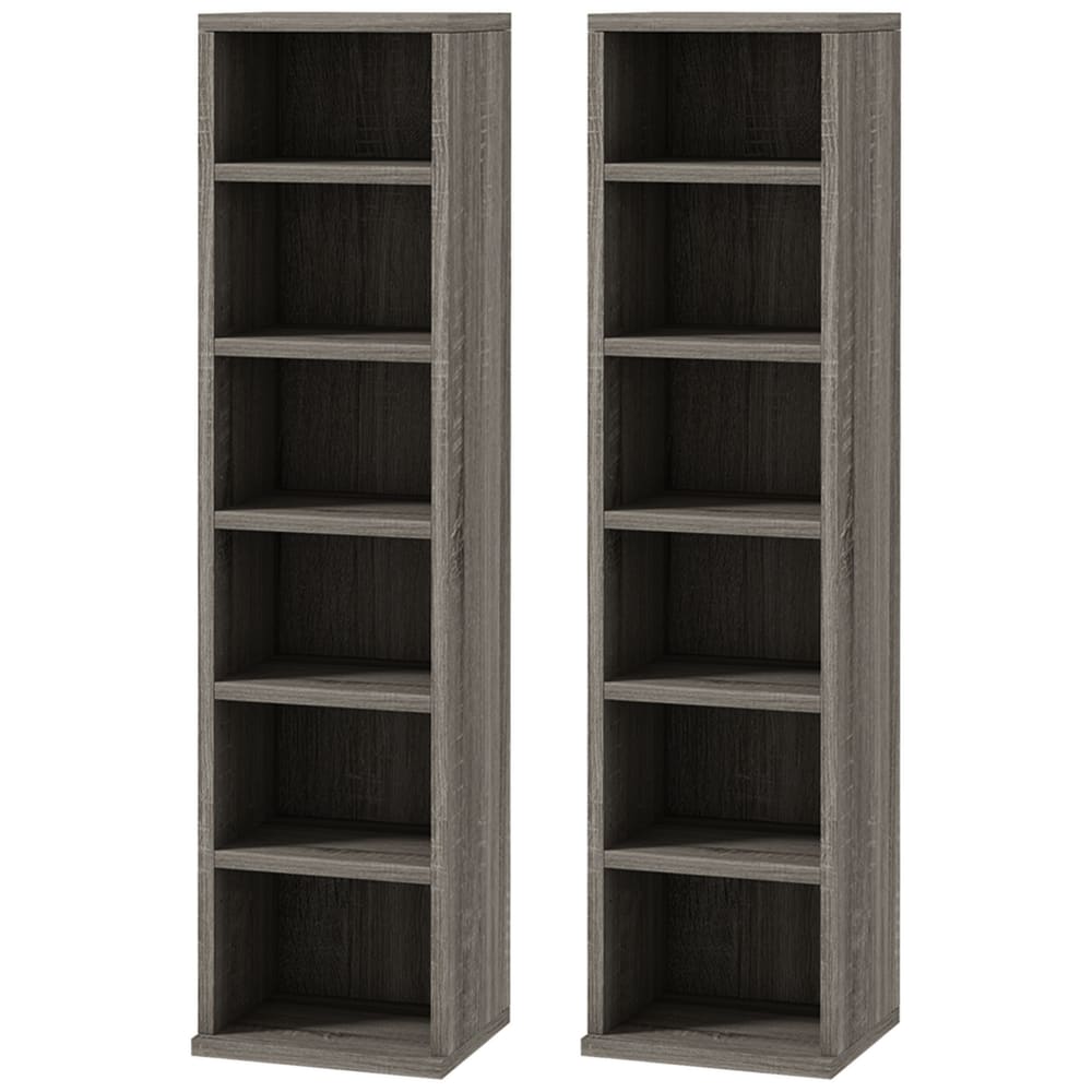 Set 2 scaffali porta cd con mensole regolabili grigio effetto legno