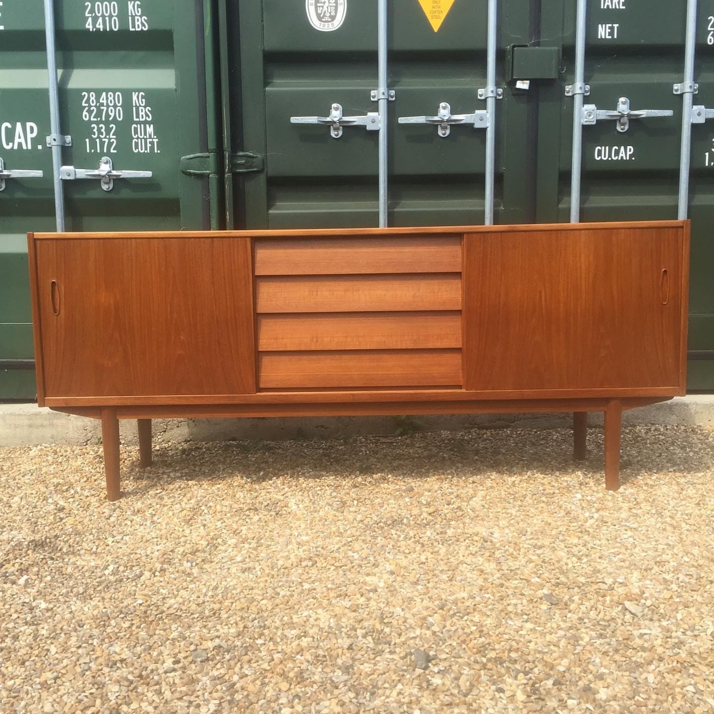 Mobile TV in noce di metà secolo con ante scanalate e ripian...