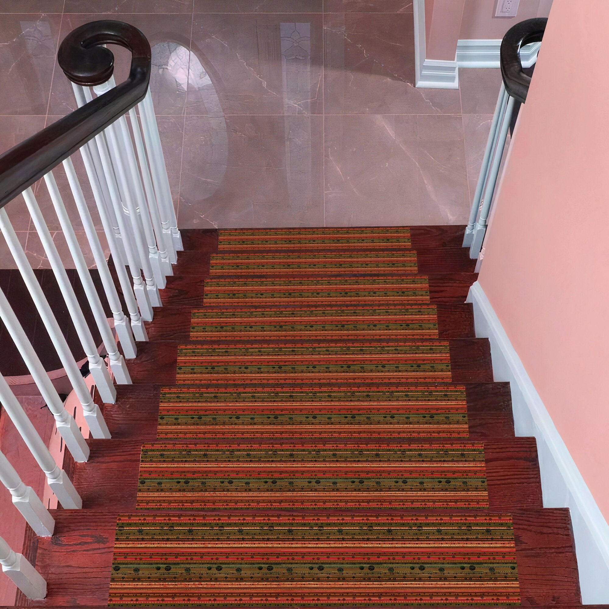 Gradini per scale a righe boho, tappeto antiscivolo per scale, tapp...