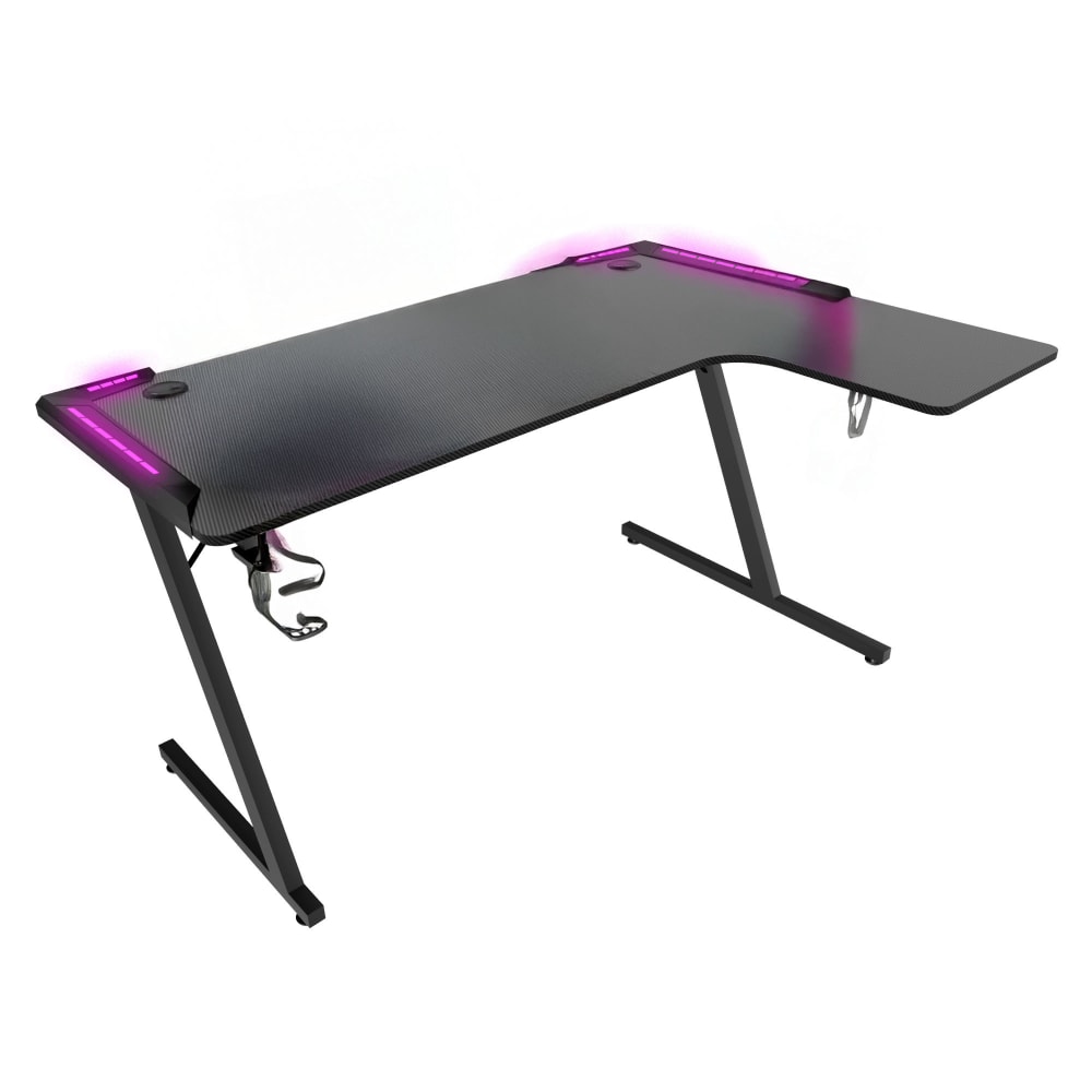 Scrivania da gaming angolare con led in mdf e metallo nero