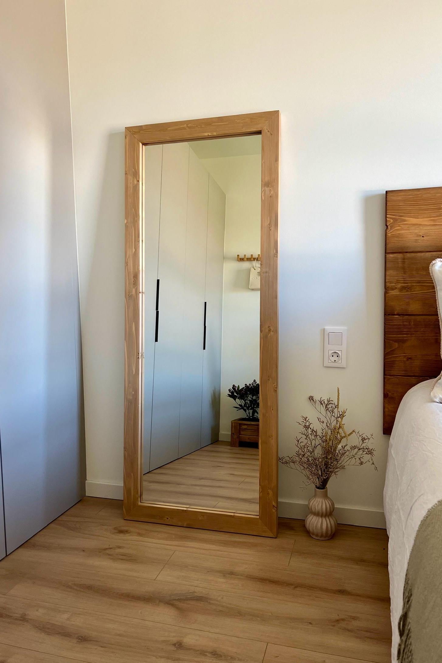 Specchio da terra con cornice in legno massello di pino color rovere medio Aggiungete un tocco di el...